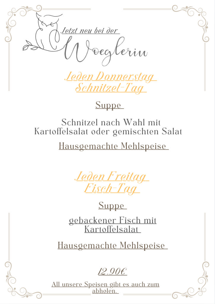 Linke Wöglerin 2, 2392 Wienerwald • Tel: 02238 / 8210 • Email: office@woeglerin.at